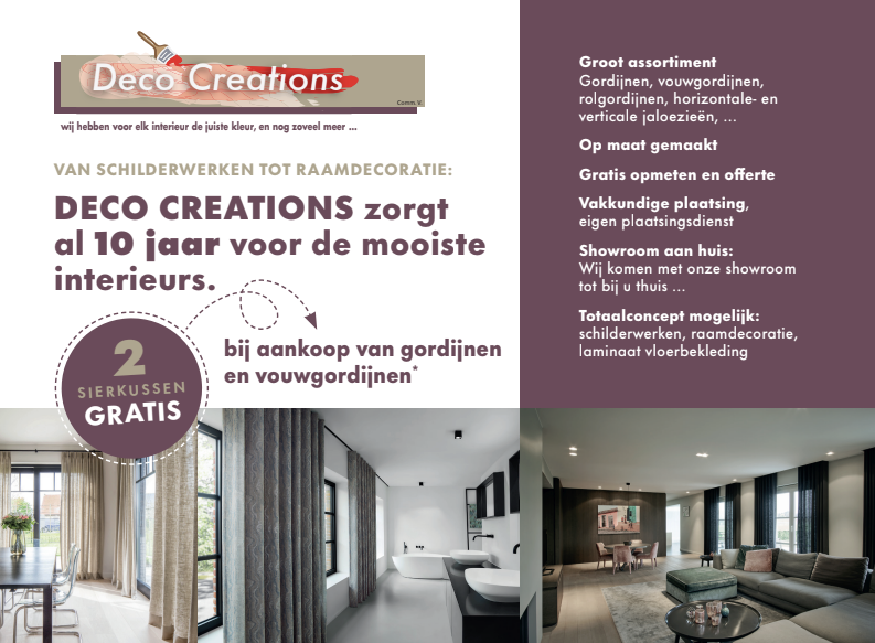 Deco Creations biedt een totaalpakket aan waardoor u als klant maar één aanspreekpunt nodig heeft voor de volledige decoratiewerken van uw woning.